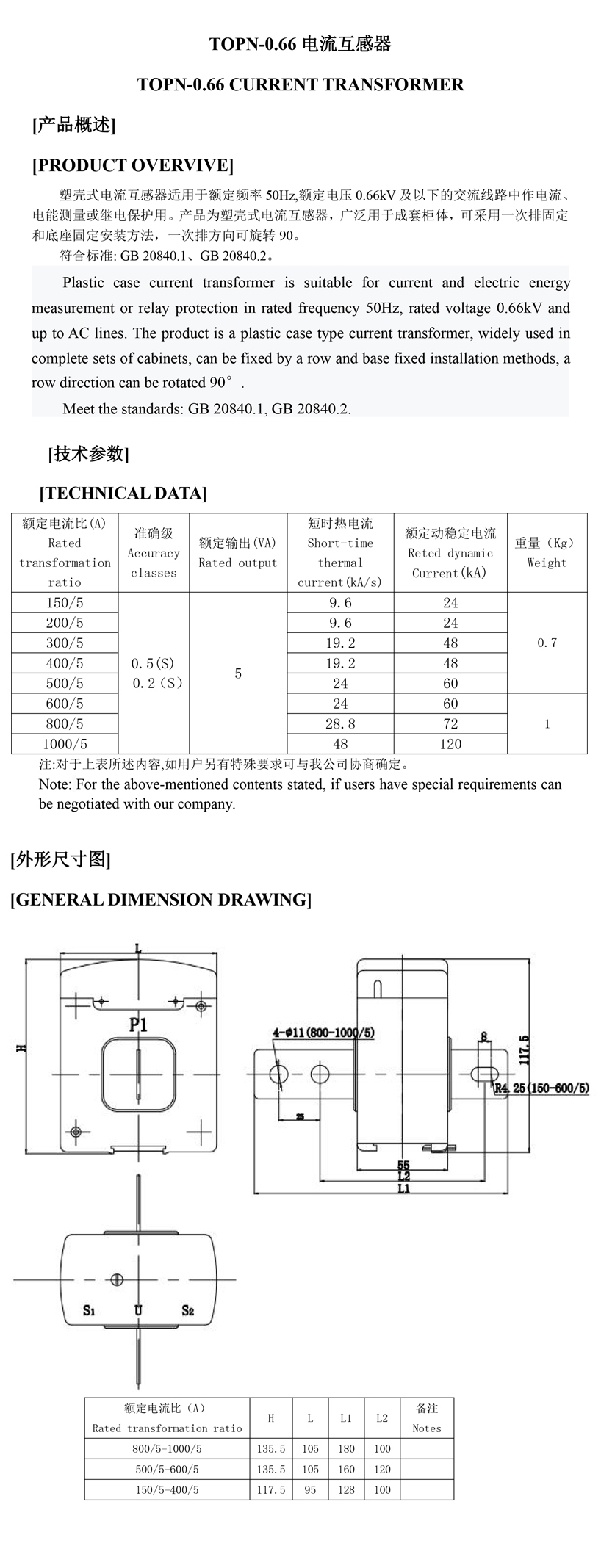 TOPN-0.66 電流互感器